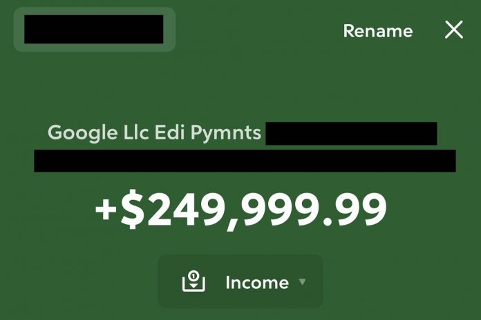 This was the case for one Omaha-area tech worker who found a payment from Google in his bank account for a cool $249,999.